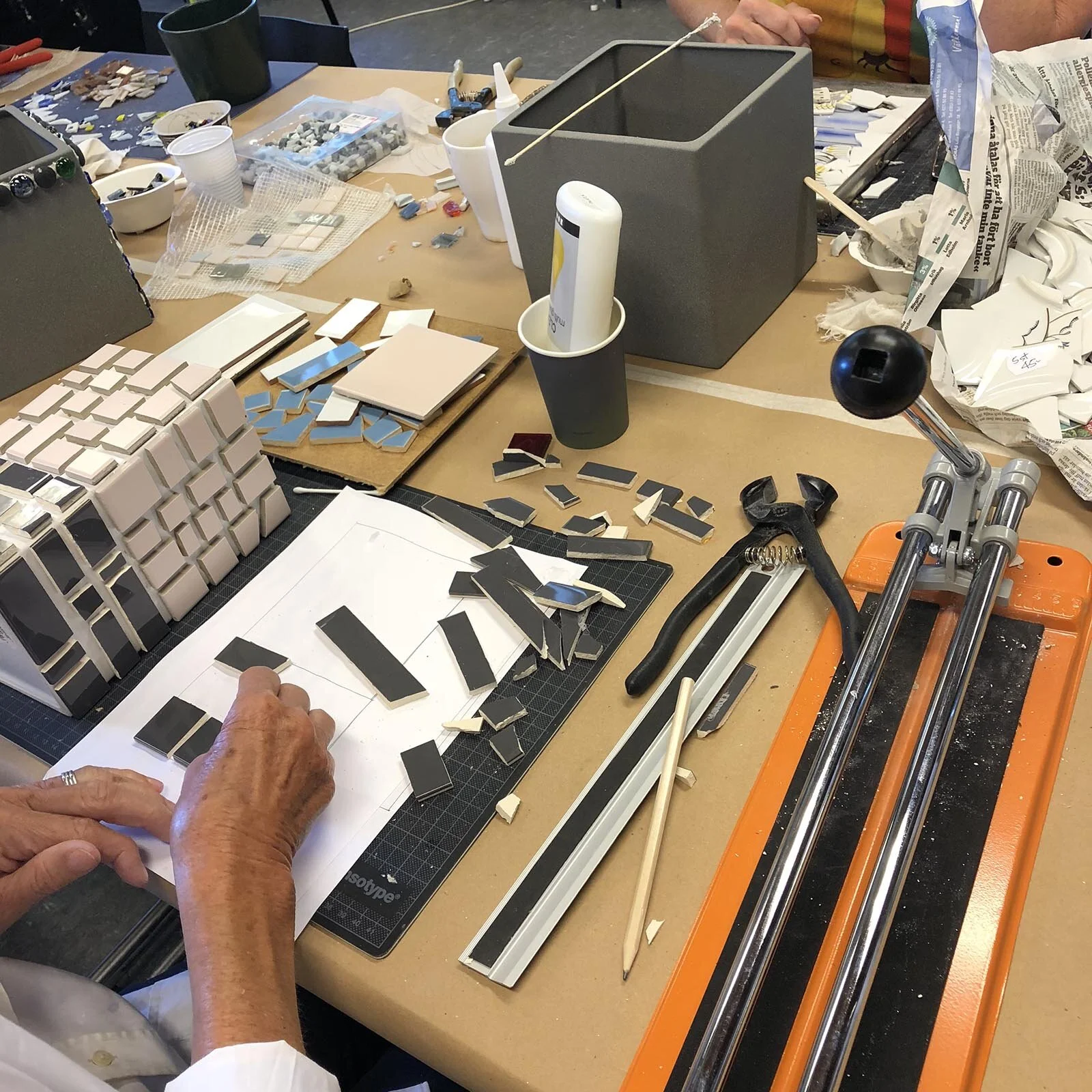 På den här kursen lägger vi mosaik på stora och små krukor, brickor, fat, små bordsskivor och andra föremål. Vi prövar många olika material och tekniker och går igenom färg, komposition, mönster och stilisering. En tur till loppis blir det, för att hitta både trasigt porslin och föremål att lägga mosaik på. Tyngdpunkten ligger på lustfyllt skapande och på att utveckla den inneboende kreativiteten. Inga förkunskaper krävs.
